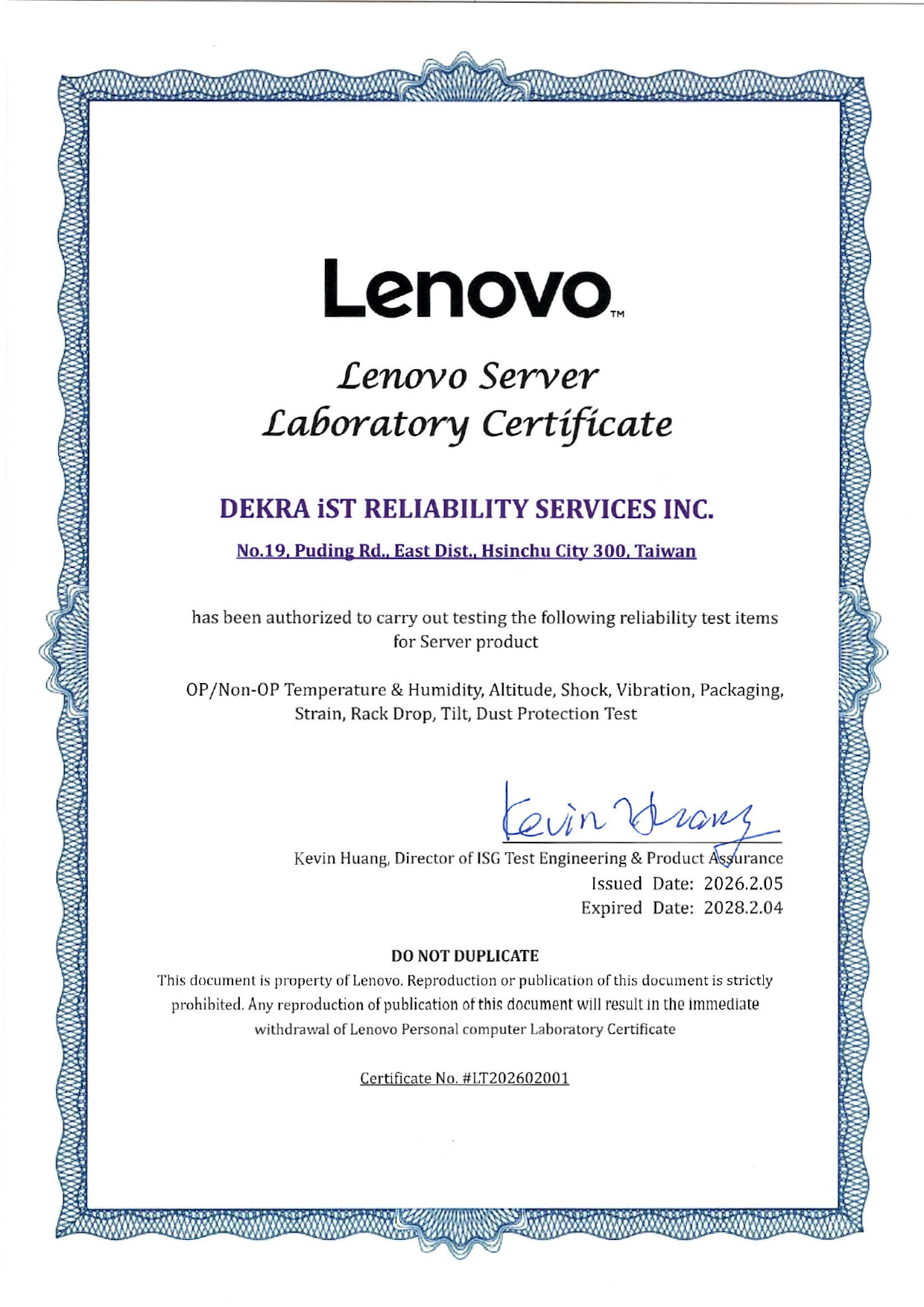 联想(lenovo)为全球第一大个人电脑生产商,联想公司主要生产笔记型电脑、一体机、电脑、伺服器、手机、平板电脑、印表机、投影机,以及其他移动互联、数码、电脑周边等类商品。 DEKRA iST德凯宜特于2016年取得联想(Lenovo) 认可合格的可靠性验证工程协力厂商实验室。