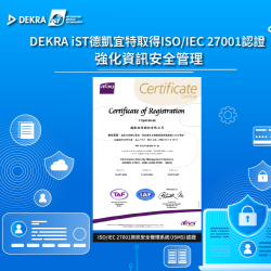 获得ISO/IEC 27001认证是DEKRA iST德凯宜特在信息安全保护的重要里程碑,亦是对客户在信息安全保障的一个承诺。展望未来,DEKRA iST德凯宜特将持续遵循ISO/IEC 27001的标准,透过定期的教育训练及安全倡导,进一步强化全体同仁的信息安全意识,提高对信息揭露敏感度,保障客户、供货商及合作伙伴的权益。