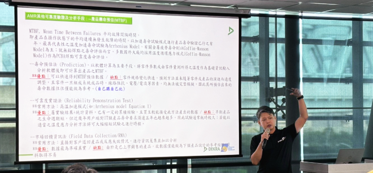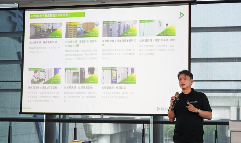 張堯凱技術經理強調在執行AMR可靠度測試時建議分解部件進行驗證,透過高加速壽命試驗(HALT),可迅速鑑別出產品的弱點零件,進而優化產品設計和提升可靠度。