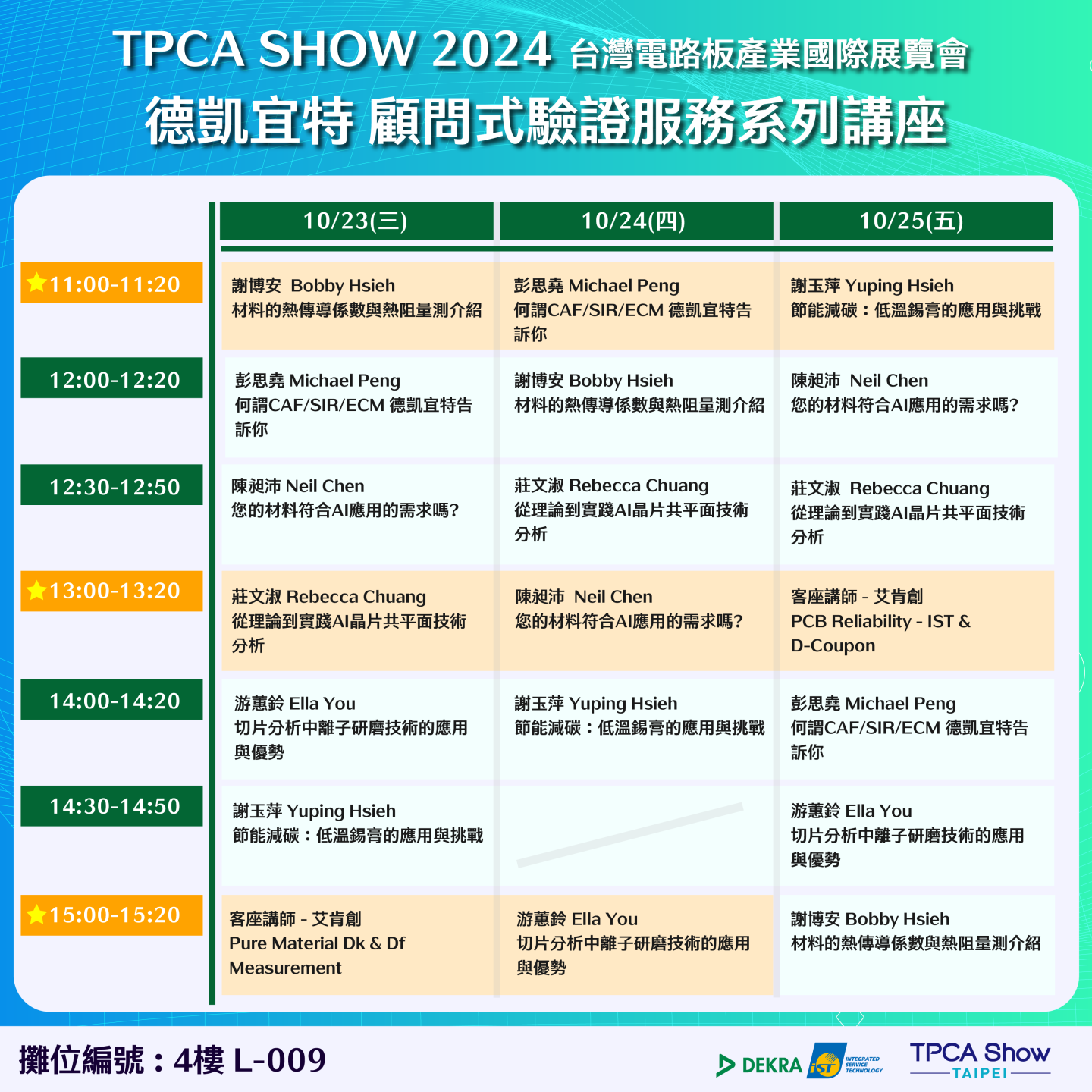 展會獨家!!顧問式驗證服務講座議程