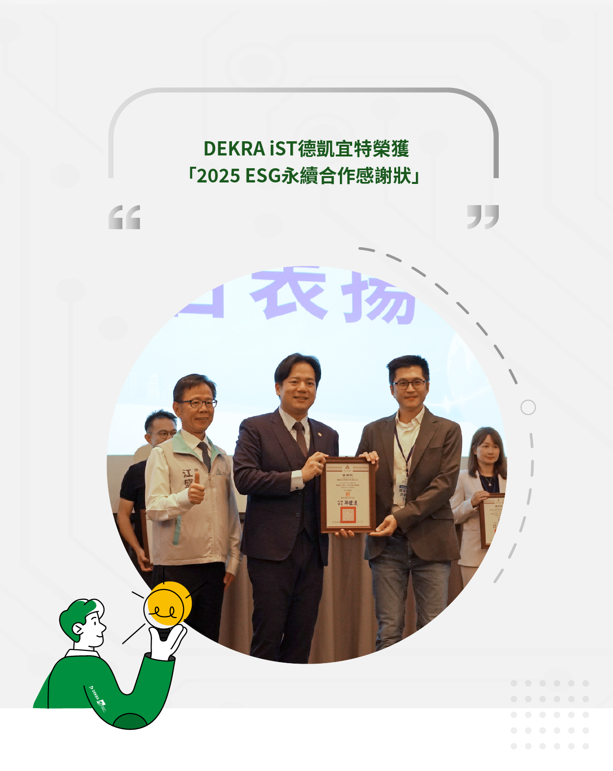 DEKRA iST德凯宜特荣获「2025 ESG永续合作感谢状」表扬
