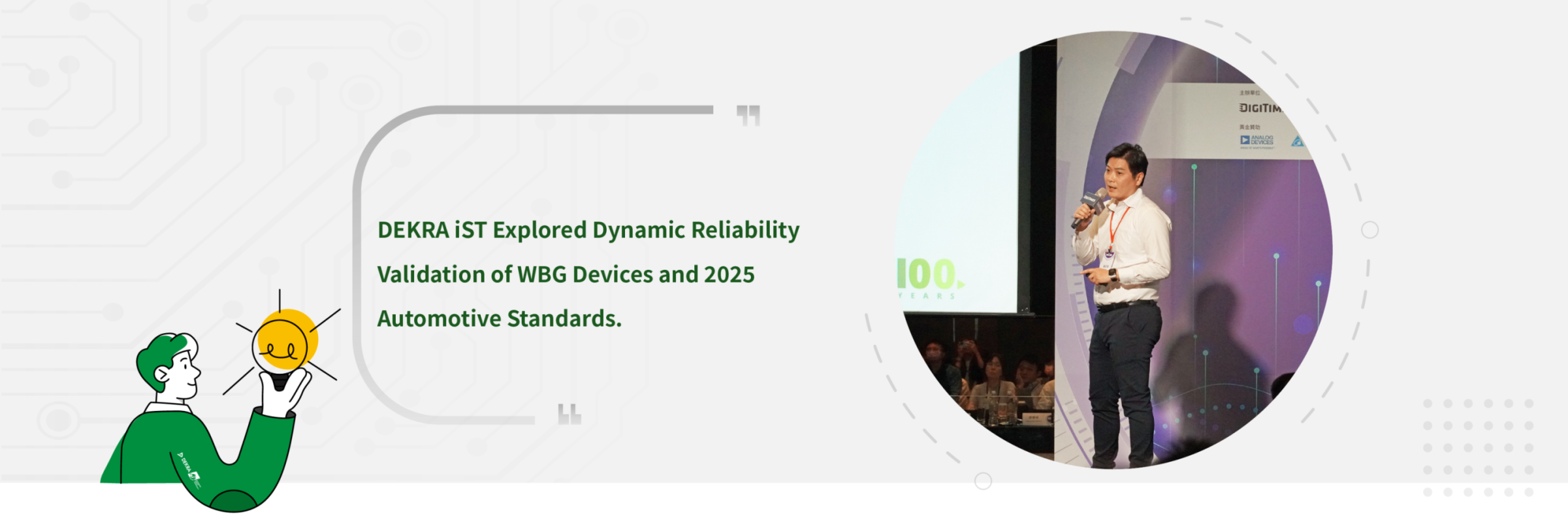 On July 4, DEKRA iST was invited to speak at the “Next-Generation Power Management Forum” organized by DIGITIMES. Max Chen, Senior Manager of the Component Engineering Department gave a presentation that delved into the dynamic reliability of Wide Bandgap (WBG) semiconductors and offered an in-depth analysis of the 2025 revision of automotive standards. The talk highlighted key updates in the new standards, shared the latest industry trends, and provided real-world experience.