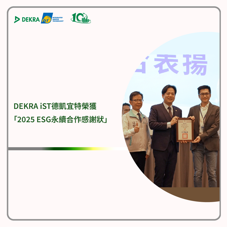 DEKRA iST德凱宜特榮獲「2025 ESG永續合作感謝狀」表揚